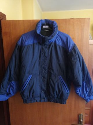 MUY BUENO!! Vintage. Chaqueta acolchada "Pacific Motion" Quartz Serie. Con aislamiento térmico, protección contra el viento. Excelente transpiración, evacuación vapor de agua del cuerpo hasta 2.000 g/m². Impermeabilidad total, resiste presión de 1 columna de agua de 2.000 mm. Colores azul marino y beige/gris con rayas rojas en horizontal. Fruncido elastico abajo, ajustable. Los puños cierran con belcro y tienen como un guante elastico si los necesitas. 2 bolsillos arriba con cremallera y solapa y 2 abajo en diagonal, también con cremallera y solapa. 1 en el brazo derecho, cremallera y solapa, justo encima de la marca y el logo.