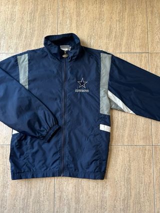 Chaqueta vintage deportiva cortavientos azul - DALLAS COWBOY 📏 Talla: L. 💙 Color: Azul oscuro, combinable y con estilo retro. ✨ Estado: Con un pequeño desperfecto en las mangas (visible en fotos), pero no afecta su uso. 💫 Estilo: Vintage, ideal para amantes de prendas con carácter y personalidad. 🌬️ Comodidad: Ligera y perfecta para proteger del viento sin perder estilo. 🚀 Envío rapidísimo: ¡Te lo mando dentro de las 24 h desde que lo pidas! 💬 Cero compromiso: Pregunta todo lo que necesites, estoy para ayudarte.