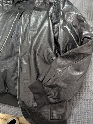 Chaqueta con textura de piel de cocodrilo. - Cierre de cremallera. - Puños y bajo elásticos. - Bolsillo con cremallera en la manga.