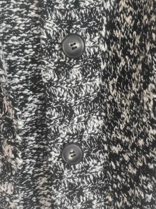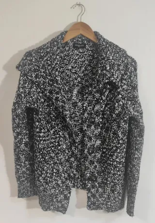 Chaqueta cardigan de punto grueso negra jastepada o vigoré con botones, manga larga y cuello tipo chal shawl collar. Como nueva.