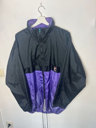 Chaqueta deportiva Fila de estilo retro. - Diseño bicolor en negro y morado. - Cuello alto. - Logo de Fila en el pecho.