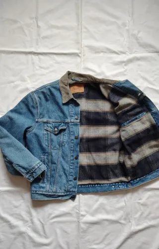 Chaqueta vaquera vintage Levis modelo 70602 02 con forro de lana, mangas acolchadas y cuello de pana. Como nueva, casi sin uso. Talla L. Vintage fit, 80s, 90s.