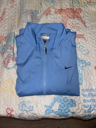Chaqueta deportiva vintage de la marca Nike. Presenta un diseño reversible con detalles en rojo y blanco. - Cuello alto. - Cierre de cremallera. - Logo de Nike bordado. Talla: Xl pequeña.