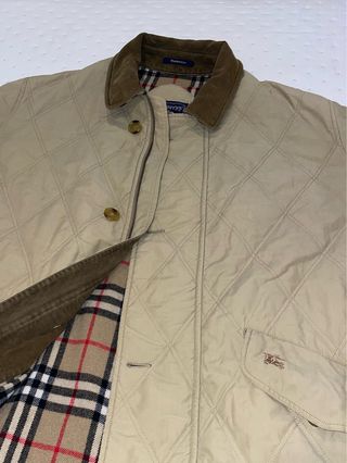 Chaqueta vintage acolchada fina de Burberry, comprada en El Corte Inglés. Talla 8 americana Interior con el cuadro clásico de Burberry. Está en muy buen estado, sin manchas ni desgastes. Ligera y perfecta para entretiempo. - Cuello de pana. - Cierre de cremallera y botones. - Bolsillo con detalle bordado