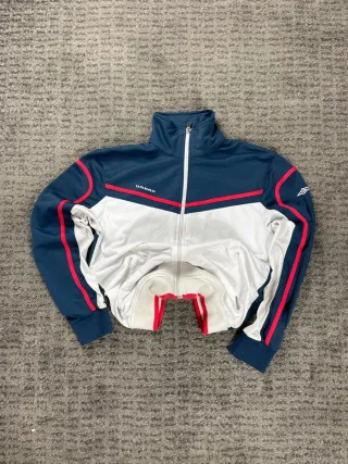 Chaqueta de chándal vintage de la marca Lotto. Diseño espectacular "Colorblock" en azul, blanco y negro. Lo mejor es su estética retro de los 90 con la banda lateral (Tape) con el logo de Lotto recorriendo las mangas. Cierre de cremallera y cuello alto. Detalles: Marca: Lotto Talla: M Estado: Buen estado general estructural, pero tiene desperfectos visibles. La tela presenta varios "enganchones" o marcas de roce en la zona azul, tal y como muestro en las fotos detalle. No son agujeros rotos, pero sí marcas en el tejido. Estilo: Ideal para uso diario, festivales, estilo Blokecore o Britpop. #lotto #vintage #trackjacket #tape