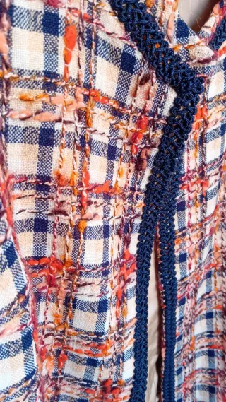 Chaqueta colorida de cuadros y detalles con lana naranja y amarilla. MÁS BLAZERS Y CHAQUETAS VINTAGE EN MI PERFIL #chaquetavintage #ropavintage #blazervintage