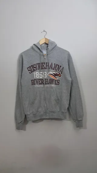 👕 Chaqueta vintage gris River Hawks Athletic Department de Champion 🏷 Talla S 📏 Medidas: 50 ancho (axila a axila) | 62 largo | 61 manga ✅️ En buen estado, el logo central de River Hawks está algo desgastado (ver segunda foto) 🔎 Detalles: logo de Champion bordado en la manga