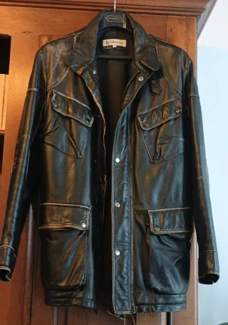 Cazadora de cuero de estilo vintage. Un clásico atemporal para cualquier armario. - Cuatro bolsillos frontales con botón. - Cierre de botones. - Cuello camisero. -Echa en Francia (mido 185/100kg) -Puesta 3-4 inviernos -Antes de guardarla la limpie en seco en una lavandería!