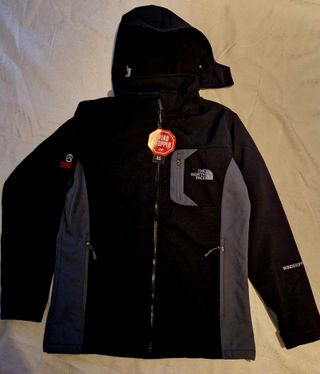 Chaqueta The North Face en talla S, con un diseño bicolor en gris y granate.tiene un pequeño agujerito delante.pero es en la capa de arriba.y unas manchas en la manga.mira fotos.por eso tan barata.por lo demas bien.original - Cierre de cremallera frontal. - Bolsillos laterales con cremallera. - Cuello alto. - Detalle WINDSTOPPER en la parte frontal.