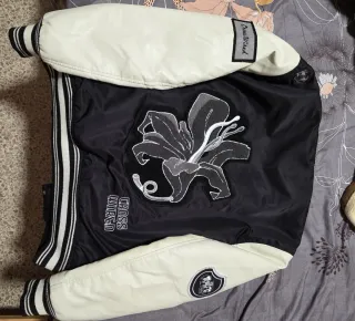 Chaqueta reversible de Zara con un diseño inspirado en el estilo japonés. Presenta un vibrante bordado de grullas y flores de cerezo. - Mangas y detalles en color dorado. - Cuerpo principal en color negro. - Cierre de cremallera frontal. - Puños y bajo con banda elástica. Tiene una mancha (ver foto nº4) MEDIDAS Largo 73cm Anchura del pecho 54 cm