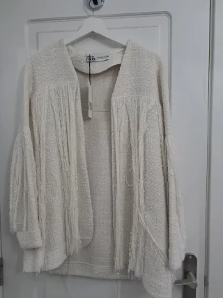 Chaqueta de Zara con un diseño moderno y detalles de flecos. - Diseño abierto. - Mangas largas. - Flecos en el bajo. solo envíos