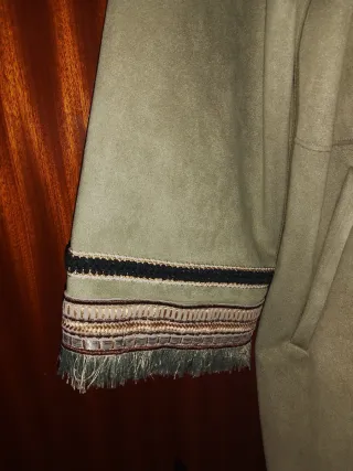 Chaqueta de antelina con detalles de estilo. - Manga larga - Adornos de pasamanería en puños. - Flecos decorativos en el bajo de la manga.