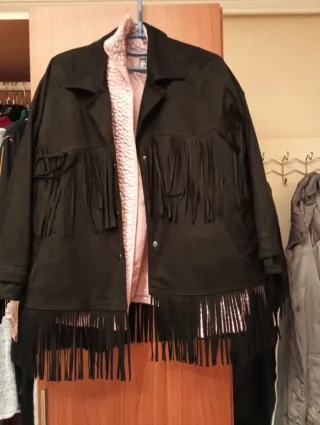 Cazadora de ante SIN ESTRENAR con un diseño único y detalles de flecos. - Diseño con flecos en hombros y mangas. - Cierre de cremallera frontal. - Bolsillos laterales con cremallera. - Entallada. - La compré pensando que adelgazaria un poco y...ese día nunca llegó 😁