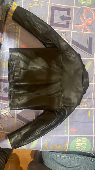 Cazadora Biker Zara Simil Piel Negra Talla S