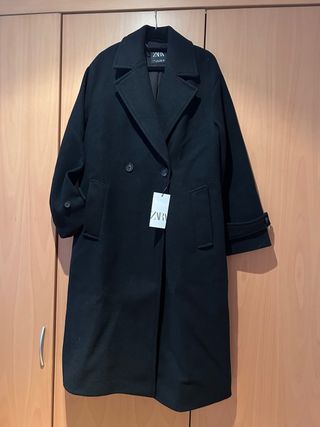 Elegante chaqueta larga de Zara. - Diseño de doble botonadura. - Cuello solapa clásico. - Bolsillos frontales. - Puños con detalle. No cambios No envios
