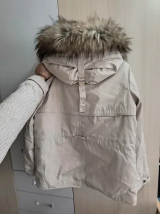 Chaqueta de Zara en tono beige, con detalles en marrón y capucha oculta con cremallera - Cierre de cremallera y botones. - Bolsillos laterales con cremallera. - Forro interior de pelo sintético en la capucha. Poco uso ,en perfecto estado