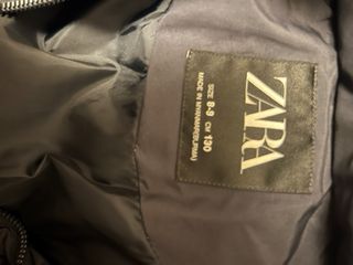 Chaqueta bomber de polipiel con un diseño moderno y acolchado. - Cierre de cremallera frontal. - Bolsillos laterales con cremallera. - Capucha integrada. - Puños y bajo elásticos. - Cierre frontal con cremallera. Medidas Largo 58cm Hombros 52cm Sisa 60cm Largo mangas 58cm. Talla XS amplia Zara
