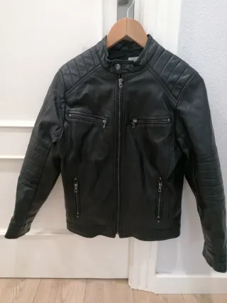 Chaqueta de piel de la marca Zara Basic. No es polipiel, es piel autentica - Material: Piel. - Fabricada en China.