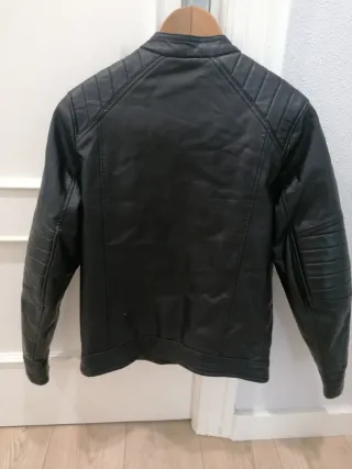 Cazadora de efecto piel con un diseño moderno. - Cuello alto con botones. - Cierre de cremallera. - Puños ajustados.