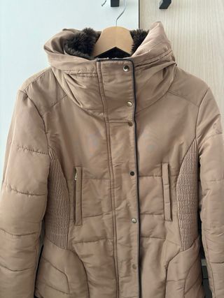 Chaqueta Zara Basic de color beige, con un diseño entallado y detalles que la hacen única. - Cuello con pelo sintético. - Cierre de cremallera y botones a presión. - Bolsillos frontales. - Puños elásticos.