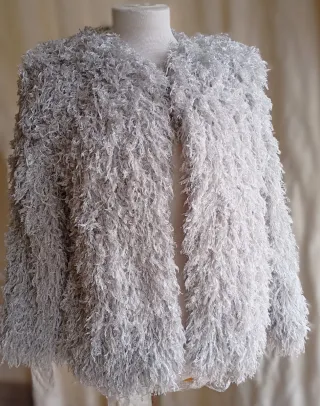 Chaqueta de Zara con un diseño original y moderno. Talla S - Estilo con efecto plumitas. - Color gris perla