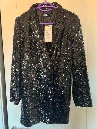 Chaqueta Zara lentejuelas negra Talla S