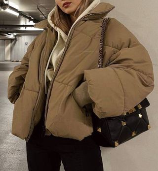 Chaqueta acolchada de Zara. Talla 36 S. Corte oversize. Color beige y forro negro. Repelente al agua. Nueva con etiqueta.