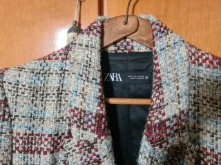 Chaqueta de vestir elegante de la marca Zara. - Diseño clásico y atemporal. - Cierre de un botón. - Bolsillos frontales. - Forro interior a rayas.
