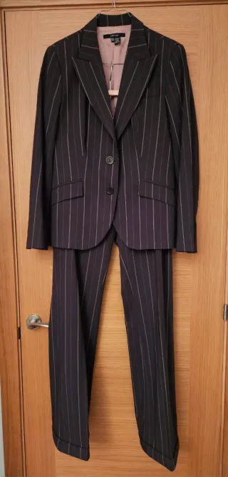 Elegante traje de raya diplomática de Zara. Compuesto por chaqueta y pantalón. Sienta muy bien y está en perfecto estado. - Chaqueta con solapa clásica. - Cierre de un botón en la chaqueta. - Bolsillos frontales en la chaqueta. - Pantalón de corte recto. #traje #traje42 #trajepantalón #trajeZara #trajepantalónmarrón #trajeZara42 Visita mi perfil. Seguro que encuentras más cosas que te gusten. Se hace descuento por lotes.