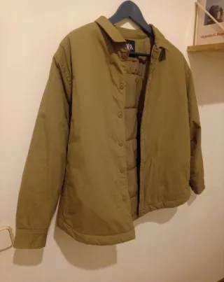 Chaqueta de Zara en color verde militar con cremallera dorada. - Cierre de cremallera frontal. - Cuello camisero. - Puños y bajo elásticos.