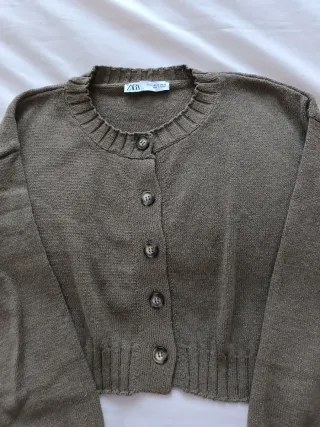 Chaqueta de punto Zara Talla L verde oliva