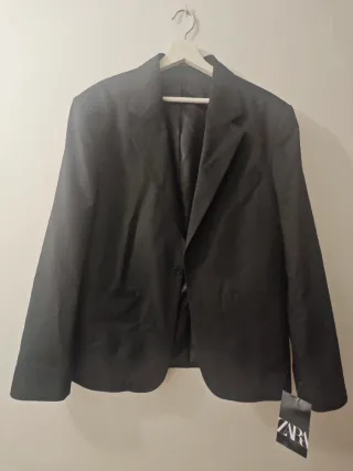Americana / Blazer de vestir de la marca Zara collection men en color negro. - Nueva y con etiquetas. - Talla ligeramente oversize. - Corte clásico. - Cierre de un botón. - Bolsillos frontales. - Forro interior.