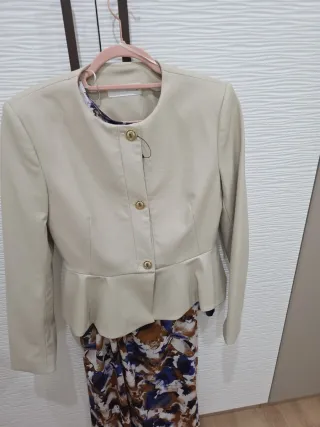Chaqueta americana de la marca Zara, talla 46. Apenas ha sido utilizada. Se regala pantalón a juego, talla 42. - Diseño elegante con detalles en el cuello y bolsillos. - Forro interior estampado.