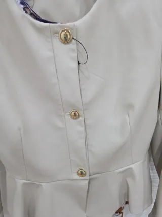 Chaqueta de polipiel con un diseño elegante y moderno. - Corte peplum. - Cierre de botones dorados. - Cuello redondo.