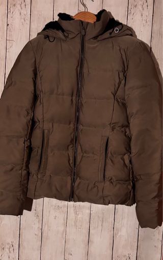 Chaqueta de invierno Zara en color marrón. Cuenta con capucha y un diseño acolchado. - Cierre de cremallera. - Detalle de pelo en la capucha. - Bolsillos laterales. - Pelo por dentro tambien, muy abrigada