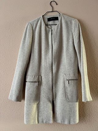 Elegante levita de Zara con un diseño moderno y versátil. - Cierre frontal de cremallera. - Dos bolsillos laterales con cremallera. - Cuello redondo.