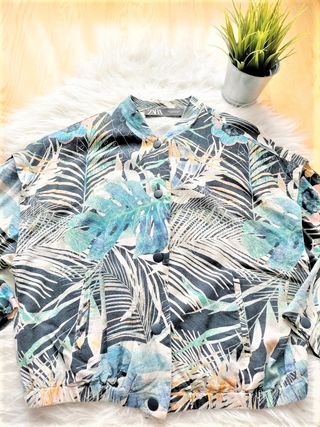 Cazadora-camisa ligera de Zara en buen estado. Es una prenda versátil y cómoda. - Cierre de botones. - Dos bolsillos en la parte delantera. - Cuello camisero.
