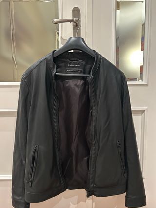 Cazadora de polipiel de Zara para hombre. - Diseño moderno. - Cremalleras en los bolsillos. - Bolsillo interior Esta desgastada en el cuello y en la parte izda de la espalda, ver fotos
