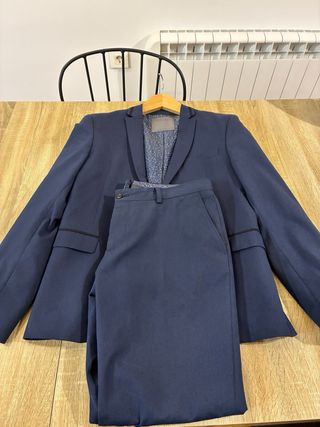 Traje de chaqueta de Zara en color gris. - Chaqueta de un botón. - Solapa de muesca. - Bolsillos frontales. - Puños con botones. Ideal para persona entre 1'60-1'72 de altura, peso 50-60kg. Muy bien conservado, poco uso. Longitud pantalón 97 cm, anchura pantalón 38 cm. Longitud manga de la chaqueta 61 cm, hombro 42 cm y altura 72 cm.