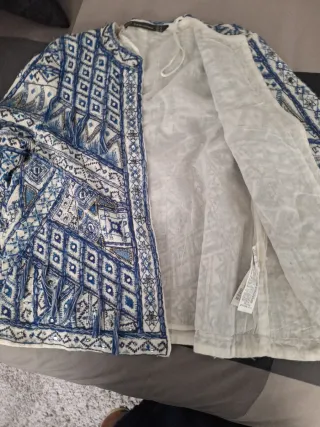 Chaqueta bordada azul y blanco