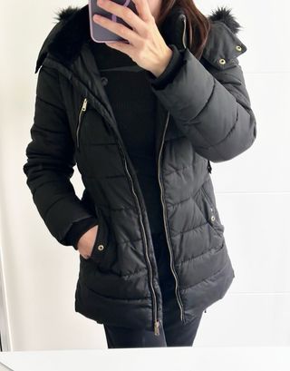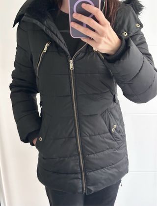 Chaqueta tipo parka de Zara, ideal para mantenerte abrigado. Forrada de pelo por dentro. Es tejido water repellent. Es talla XS amplia, vale también para una S.