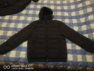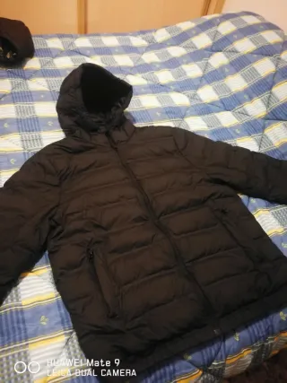 Chaqueta acolchada con capucha de Zara. - Cierre de cremallera. - Bolsillos laterales con cremallera. - Puños elásticos. - Muy ligera y abriga mucho.