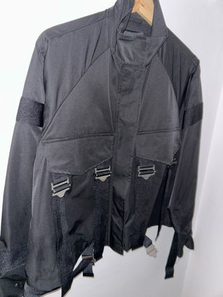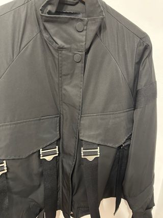 Chaqueta técnica con un diseño moderno y detalles funcionales. - Confección en tejido técnico. - Cierre con cremallera y botones a presión. - Bolsillos frontales con solapa. - Correas ajustables con hebillas metálicas. - Puños con cierre de velcro.