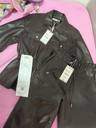 Conjunto Zara efecto piel marrón