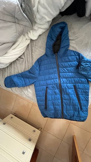 Chaqueta acolchada Zara talla L ( marca XL pero talla como L si quieres que quede ancha) Color Azul, blanco y gris Con bolsillos y cremallera Perfecto estado