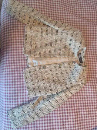 Sin usar, me queda pequeña. Ellegante chaqueta de tweed con un diseño clásico y atemporal. Perfecta para añadir un toque sofisticado a cualquier atuendo. - Tejido texturizado con hilos en contraste. - Cierre frontal con botones. - Corte cropped.