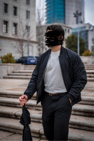 Cazadora de piel negra con un diseño moderno y atemporal. - Cuello alto con cierre de cremallera. - Bolsillos frontales con cremallera. - Detalle de hombreras. - Puños con cremallera.