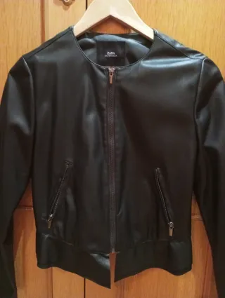 Chaqueta de Zara con efecto piel, ideal para un look moderno. Es una prenda nueva a estrenar. - Diseño tipo bomber. - Cremallera frontal. - Bolsillos laterales con cremallera. - Puños y bajo elásticos. - vendo por no poder cambiarla perdi el ticket !! - Costaba 130 la pille en rebajas por 70