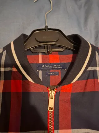 Chaqueta Zara Bomber Cuadros Azul/Negro