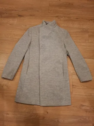 Se vende chaqueta tipo Garbardina de marca Zara en color gris, talla S es original, esta en muy buen estado, ha sido poco usada y bien cuidada, cuenta con boton de repuesto en la etiqueta de componentes